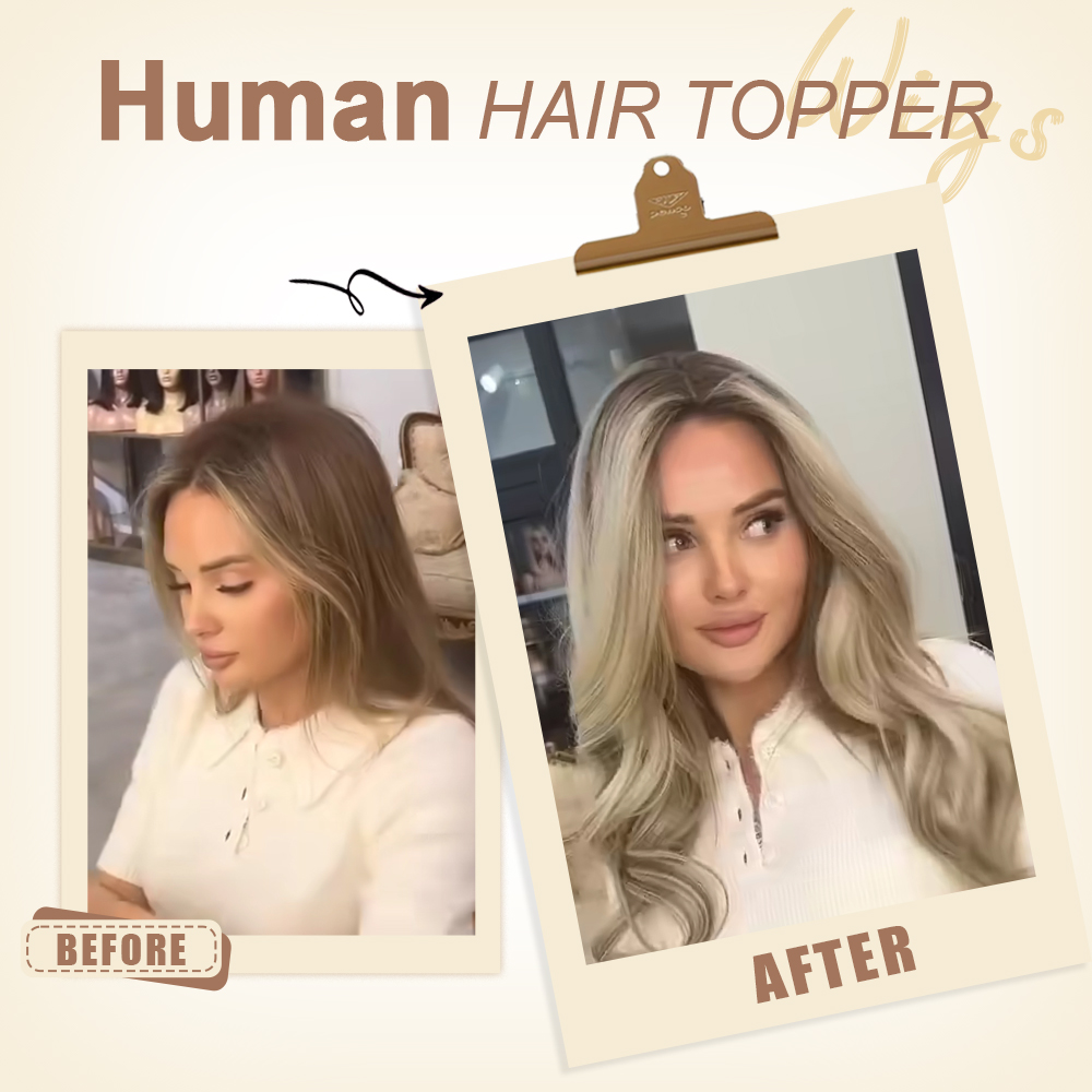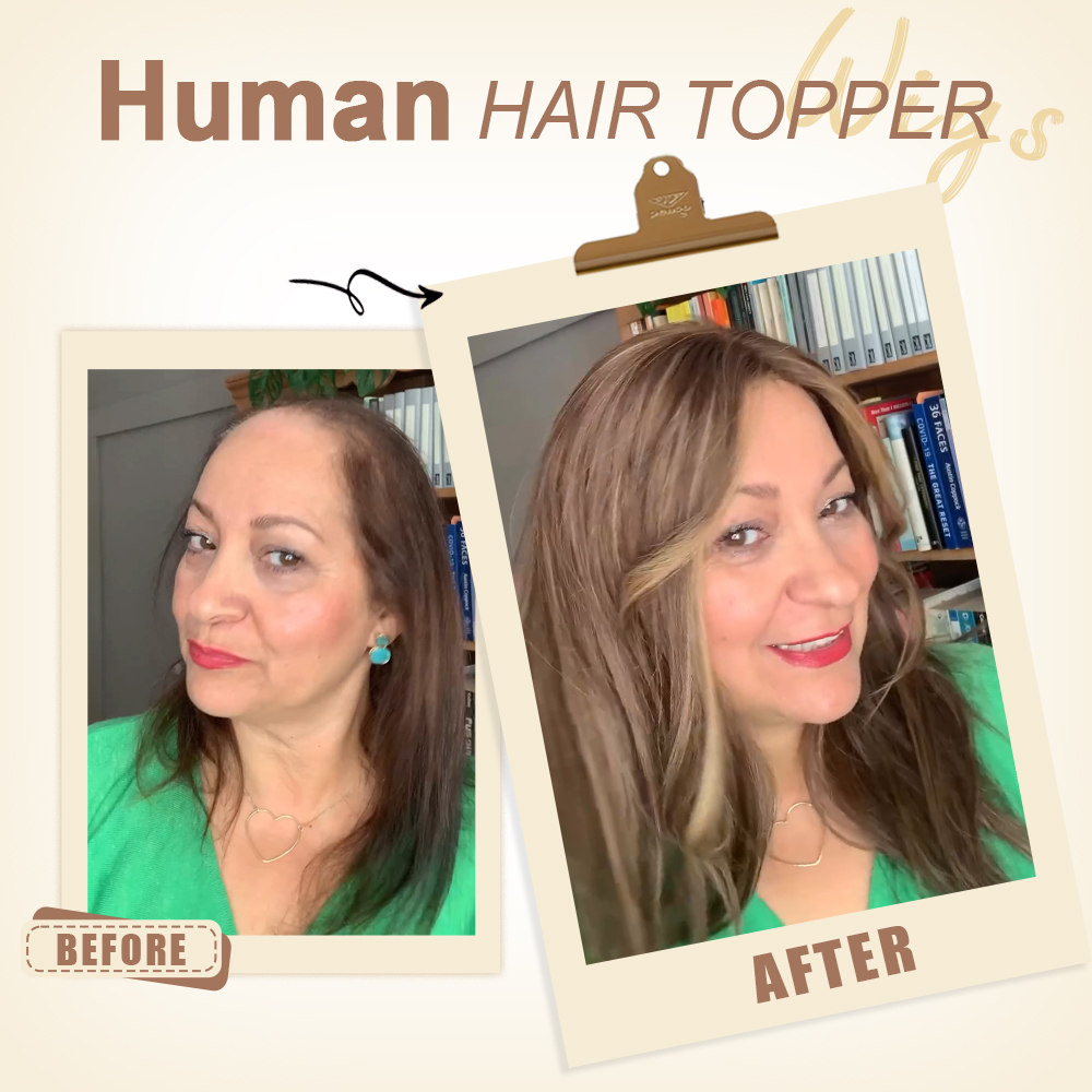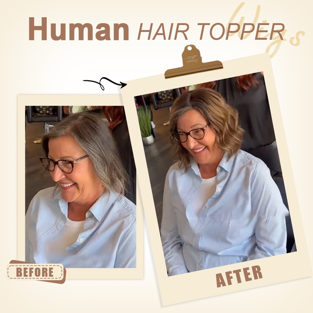 Thinning Hair Wavy Hair Topper - 100% Human Hair, Ultra-Invisible to Cover Bald Spots