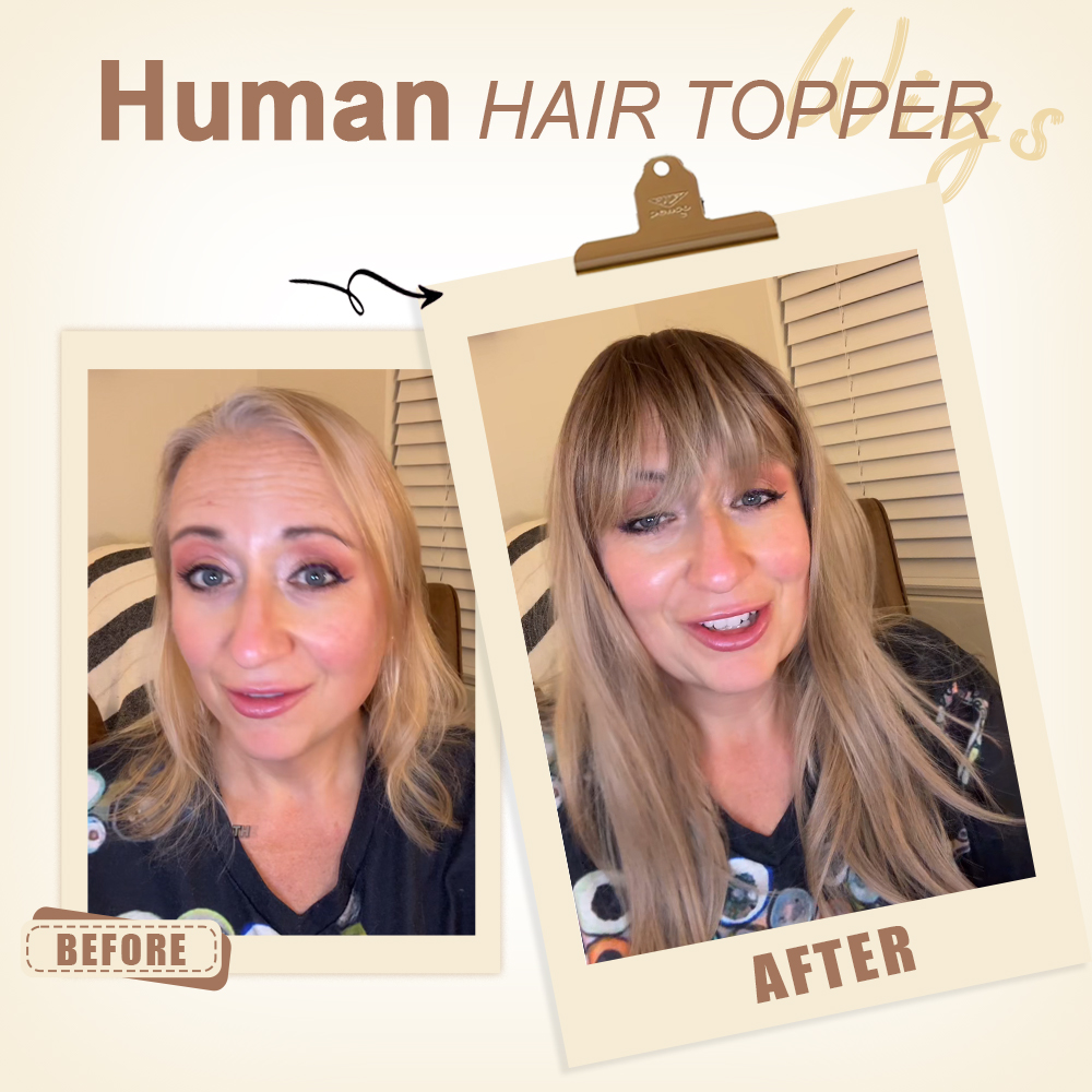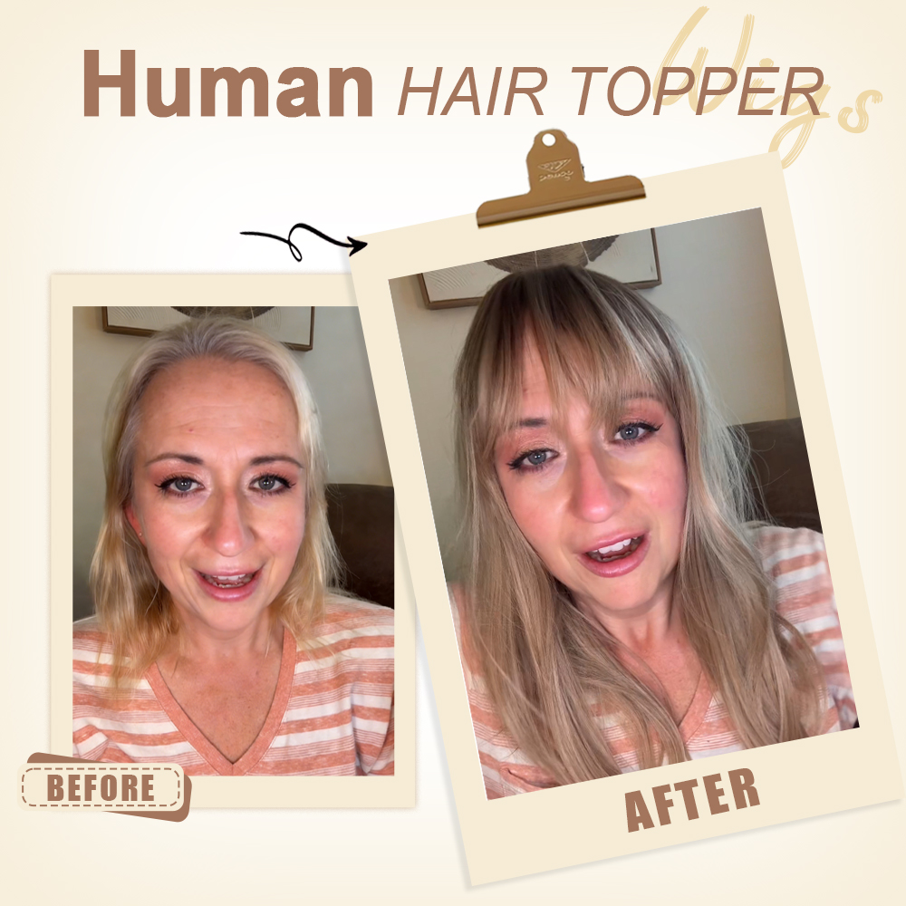 Wavy Hair Topper for Women Natural Looking Hairpiece with Wispy Bangs, Volume Booster Wiglet for Full Coverage